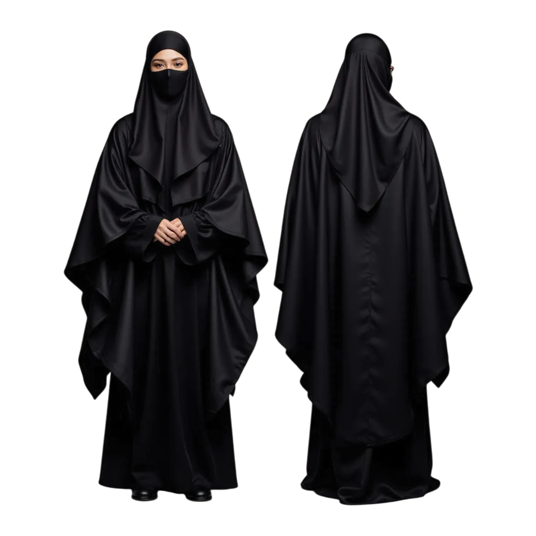 Hijab & Niqab: Comes with a matching hijab and niqab set for full Islamic coverage.