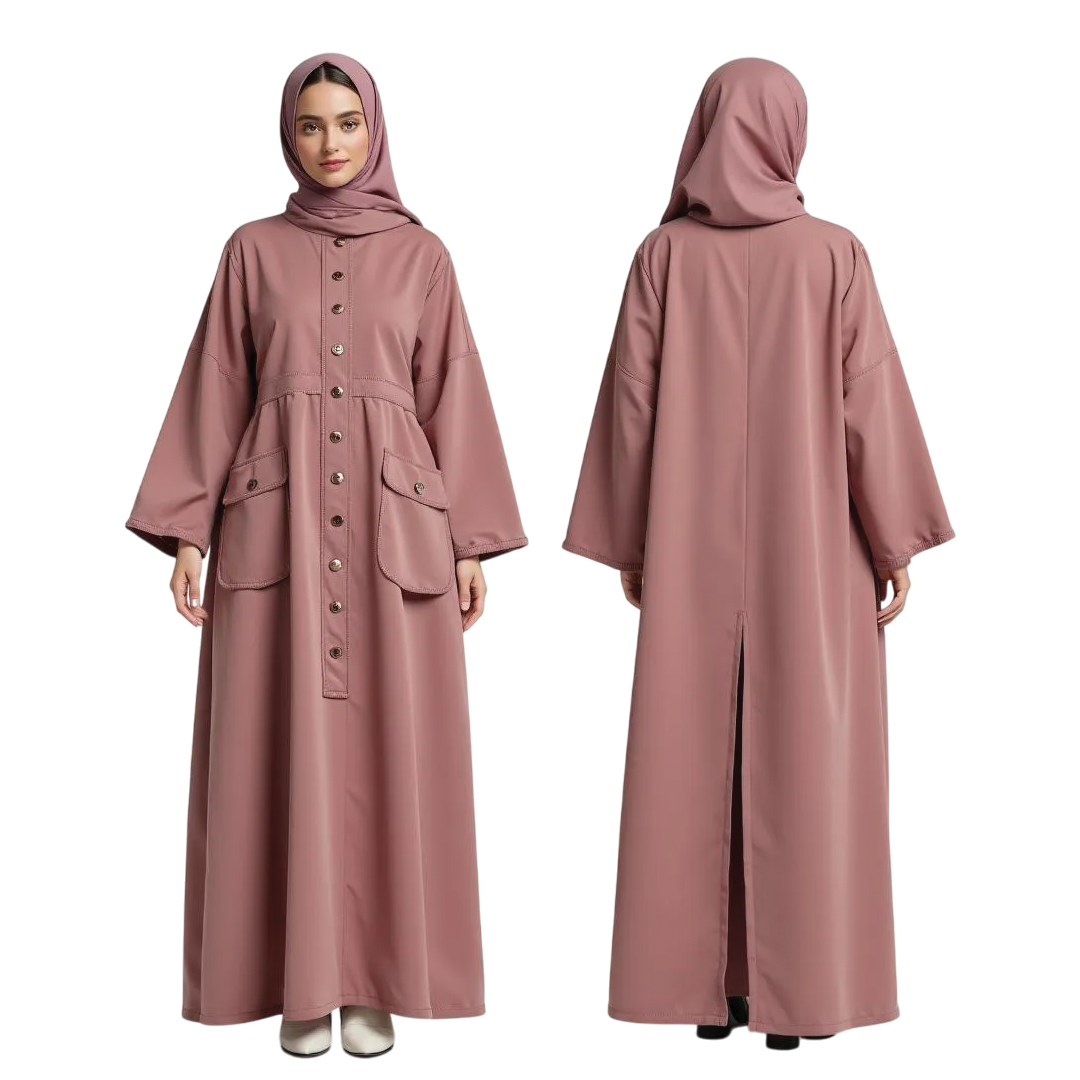Elevate your everyday style with the "Rosewood Utility" Abaya, a sophisticated and versatile garment designed for the modern woman. This abaya combines classic modesty with contemporary design elements, making it perfect for a range of occasions.