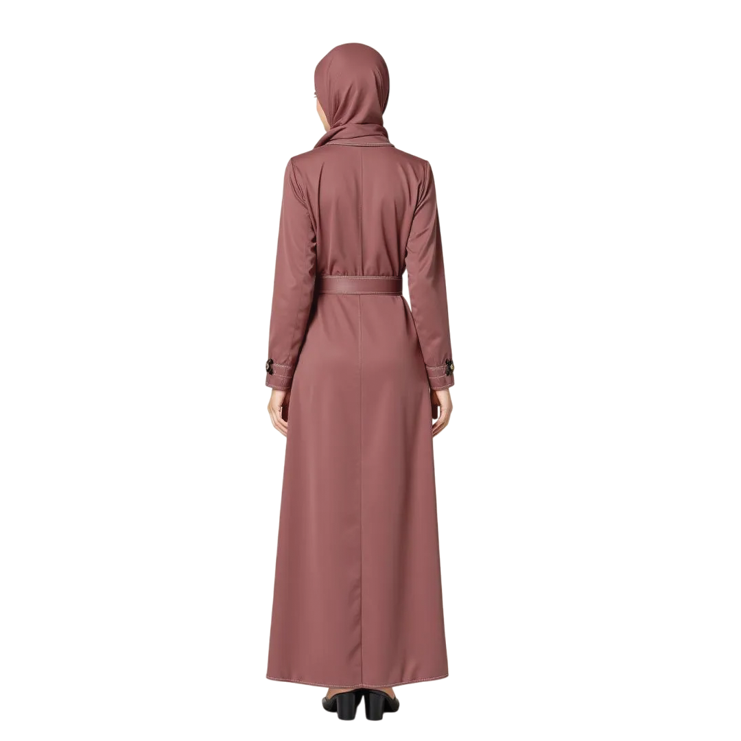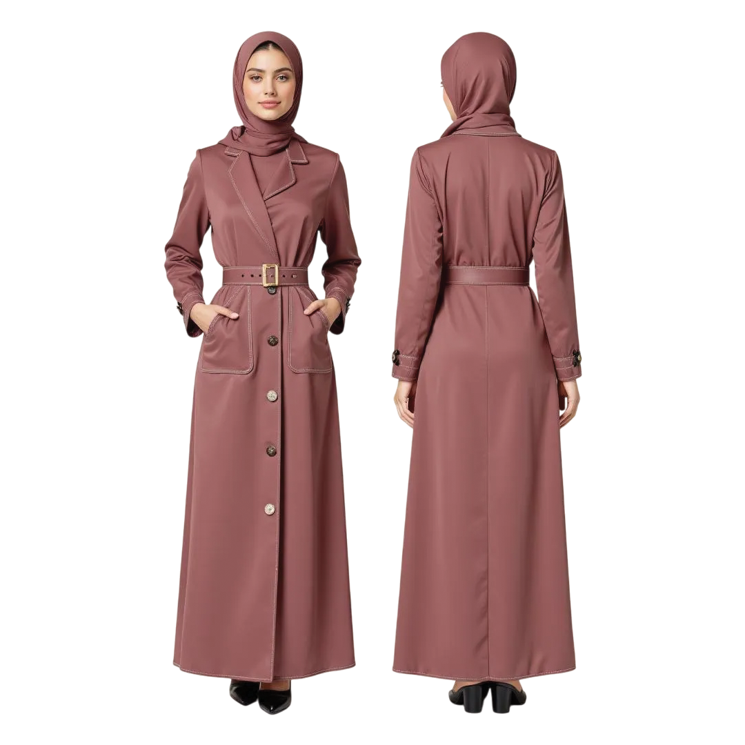 Classic Trench Coat Design: This abaya features a double-breasted style front and a belted waist, reminiscent of the iconic trench coat.